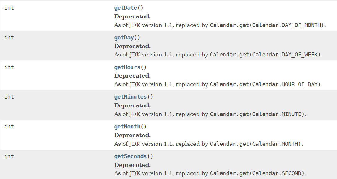 요즘은 Date 클래스에서 get메소드를 이용하려고 하면 Calendar 클래스를 사용할 것을 추천한다.