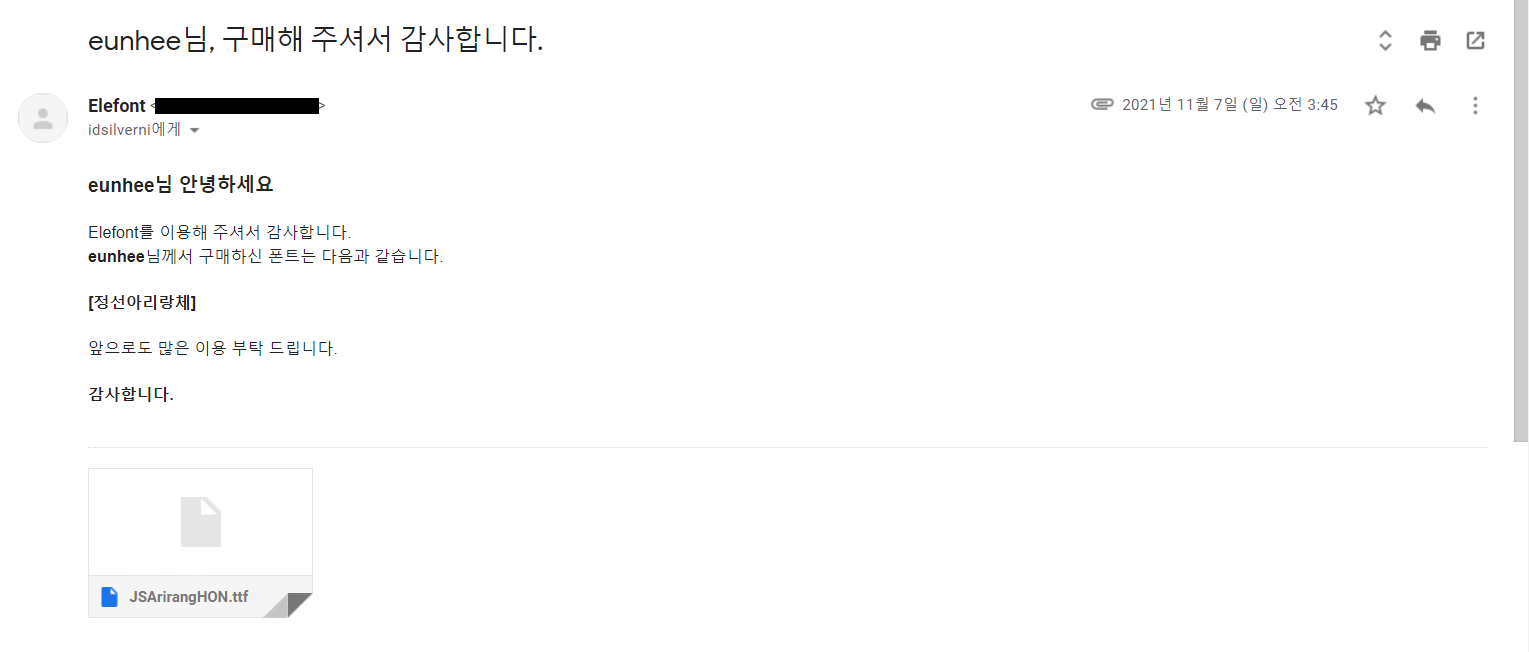 123456789101112131415161718192021222324252627282930313233343536373839404142434445464748495051525354555657585960616263646566676869707172737475767778798081828384858687888990919293949596979899100101102103104105106107108109110111112113114115116117118119120121public class MailSend {public void enrollMailSend(Member member) {Properties prop = System.getProperties();String memberId = member.getMemberId();String memberEmail = member.getMemberEmail();prop.put("mail.transport.protocol", "smtp");prop.put("mail.smtp.starttls.enable", "true");prop.put("mail.smtp.host", "smtp.gmail.com");prop.put("mail.smtp.auth", "true");prop.put("mail.smtp.port", "587");Authenticator auth = new MailAuth();Session session = Session.getDefaultInstance(prop, auth);MimeMessage msg = new MimeMessage(session);//메일 출력 텍스트StringBuffer sb = new StringBuffer();sb.append("<h3>" + memberId + "님 안녕하세요</h3>");sb.append("<span>회원가입을 축하합니다.</span><br>");sb.append("<span><strong>"+ memberId+"</strong>님께서 Elefont에서 딱 맞는 폰트를 찾으시길 바랍니다.</span><br>");sb.append("<span>감사의 의미로 회원가입 <strong>200p</strong>가 증정되었습니다.</span><br>");sb.append("<span>앞으로도 많은 이용 부탁 드립니다.</span><br>");sb.append("<h4>감사합니다.</h4>");String html = sb.toString();try {msg.setSentDate(new Date());new MailAuth();msg.setFrom(new InternetAddress(MailAuth.MAILID, "Elefont"));InternetAddress to = new InternetAddress(memberEmail);msg.setRecipient(Message.RecipientType.TO, to);msg.setSubject( memberId + "님, Elefont 회원가입을 축하드립니다.");msg.setText(html, "UTF-8", "html");Transport.send(msg);} catch (Exception e) {// TODO Auto-generated catch blocke.printStackTrace();}}public void purchaseMailSend(List<Order> orderList, List<String> attachList) {Properties prop = System.getProperties();OrderExt order = (OrderExt) orderList.get(0);String memberId = order.getMemberId();String memberEmail = order.getMemberEmail();List<String> fontNames = new ArrayList<>();for(Order _oe : orderList) {OrderExt oe = (OrderExt) _oe;fontNames.add(oe.getFontName());};prop.put("mail.transport.protocol", "smtp");prop.put("mail.smtp.starttls.enable", "true");prop.put("mail.smtp.host", "smtp.gmail.com");prop.put("mail.smtp.auth", "true");prop.put("mail.smtp.port", "587");Authenticator auth = new MailAuth();Session session = Session.getDefaultInstance(prop, auth);MimeMessage msg = new MimeMessage(session);//메일 출력 텍스트StringBuffer sb = new StringBuffer();sb.append("<h3>" + memberId + "님 안녕하세요</h3>");sb.append("<span>Elefont를 이용해 주셔서 감사합니다.</span><br>");sb.append("<span><strong>"+ memberId+"</strong>님께서 구매하신 폰트는 다음과 같습니다.</span><br>");sb.append("<h4>"+ fontNames.toString() +"</h4>");sb.append("<span>앞으로도 많은 이용 부탁 드립니다.</span><br>");sb.append("<h4>감사합니다.</h4>");String html = sb.toString();try {msg.setSentDate(new Date());new MailAuth();msg.setFrom(new InternetAddress(MailAuth.MAILID, "Elefont"));InternetAddress to = new InternetAddress(order.getMemberEmail());msg.setRecipient(Message.RecipientType.TO, to);Multipart multipart = new MimeMultipart();MimeBodyPart mTextPart = new MimeBodyPart();MimeBodyPart mFilePart = new MimeBodyPart();msg.setSubject( memberId + "님, 구매해 주셔서 감사합니다.");mTextPart.setText(html, "UTF-8", "html");multipart.addBodyPart(mTextPart);//보낼 첨부파일이 여러개일 경우if(attachList.size() > 1) {for(int i = 0; i < attachList.size(); i++) {FileDataSource fds = new FileDataSource(attachList.get(i));mFilePart.setDataHandler(new DataHandler(fds));mFilePart.setFileName(fds.getName());multipart.addBodyPart(mFilePart);}}else {FileDataSource fds = new FileDataSource(attachList.get(0));mFilePart.setDataHandler(new DataHandler(fds));mFilePart.setFileName(fds.getName());multipart.addBodyPart(mFilePart);}msg.setContent(multipart);Transport.send(msg);} catch (Exception e) {e.printStackTrace();}}cs prop.put("mail.smtp.starttls.enable", "true"); 로그인시 TLS를 사용할 것인지 설정prop.put("mail.smtp.host", "smtp.gmail.com"); 이메일 발송을 처리해줄 SMTP서버